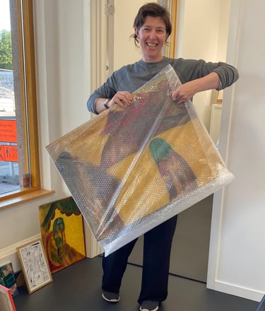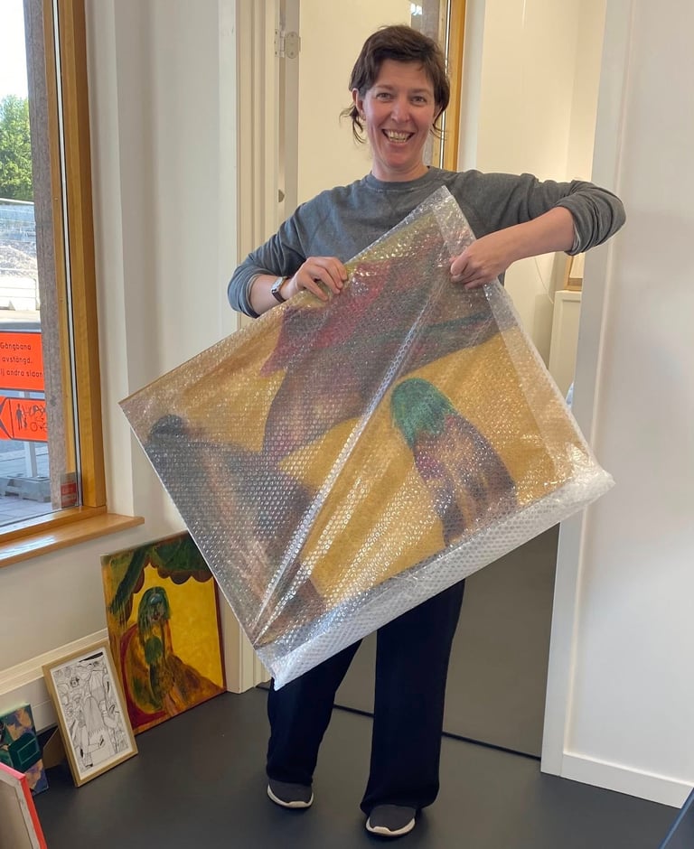 Idag skapar hon ofta naivistiska "Glad-tavlor" i blandteknik, gärna med koppling till Gotland. Under en period bytte hon till akryl och utvecklade en mer experimentell stil, där hon målade med händer, svampar och trasor istället för penslar.