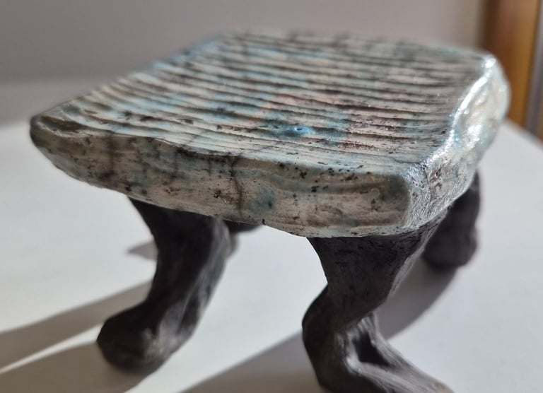 Aila Stefansdotter-Franck, "The Tired Table", raku - glaserad keramik av stengidslera 1200 kr